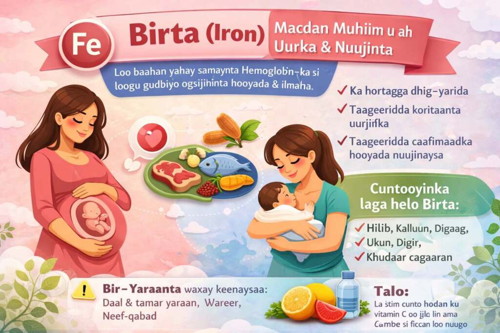Birta (Iron) waa macdan (mineral) aad muhiim u ah jidhka bini’aadamka. Waxay ka mid tahay nafaqooyinka ugu muhiimsan ee haweenka uurka leh iyo kuwa nuujinaya, sababtoo ah jidhku wuxuu u baahan yahay dhiig badan si uu u taageero koritaanka ilmaha iyo soo saarista caanaha naaska.